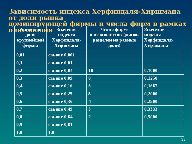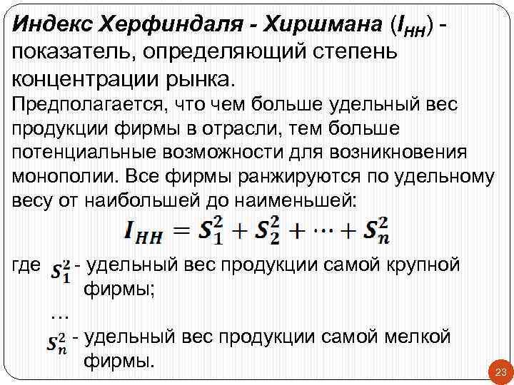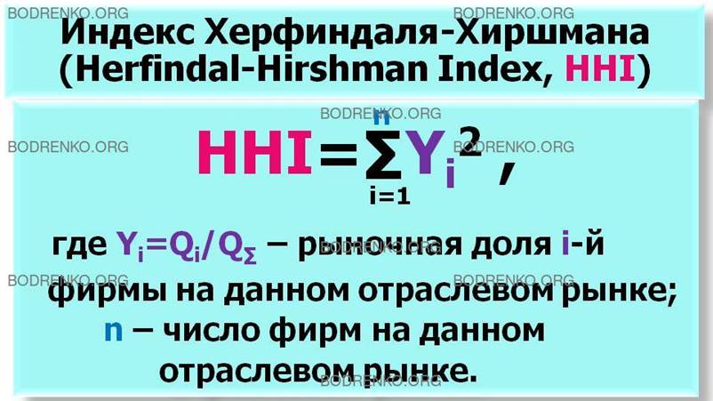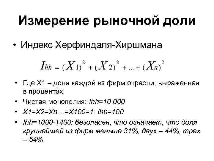 Определить индекс херфиндаля хиршмана