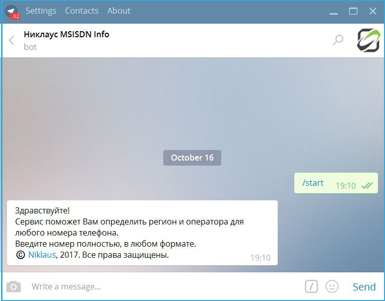 Определить номер в телеграмме бот