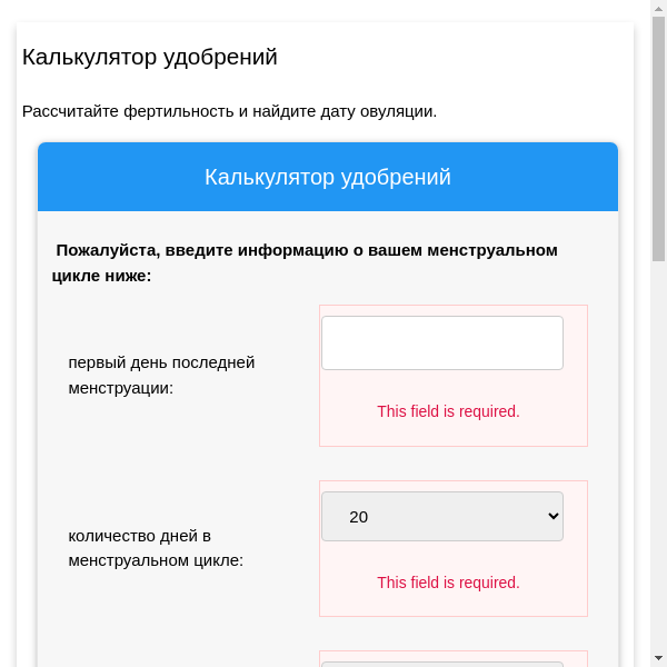 Определить овуляцию калькулятор