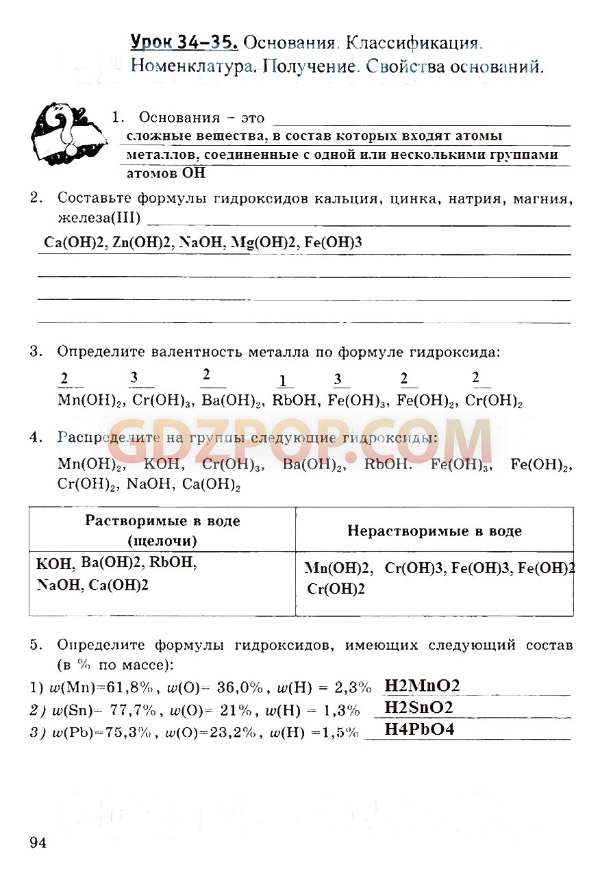 Определите валентность металла по формуле гидроксида: 4 . Распределите на группы следующие гидроксиды: 5 . Определите формулы гидроксидов, имеющих следующий состав (в % по массе): 6 .