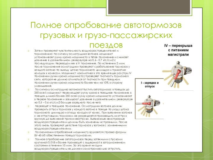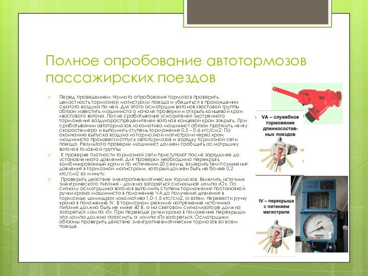 Опробование автотормозов на станции