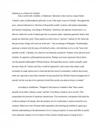 The essay will argue that in keeping with the alternative title for Candide -- Optimism -- throughout the narrative, Candide always looks ahead to the future . His travails would have put paid to most people . ut his optimism and will to survive enables him to use all his abilities toβ¦