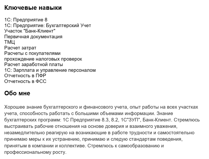Опыт и знания в резюме