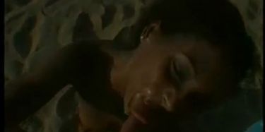 Sort med stor penis modtager et blowjob fra en hvid pige