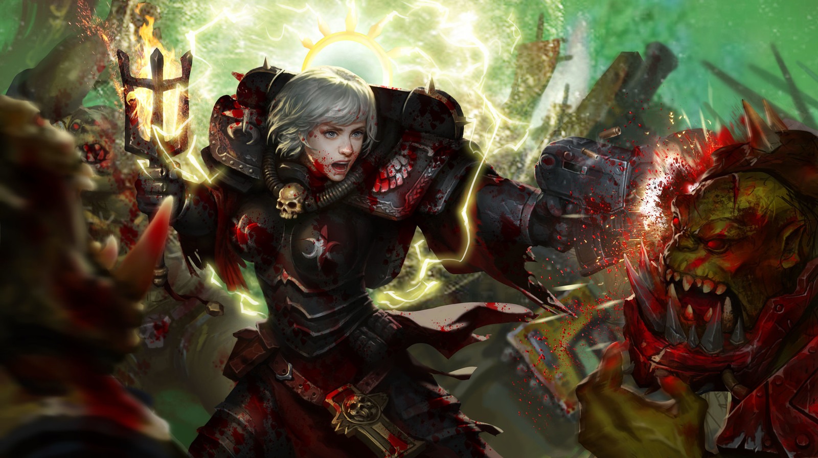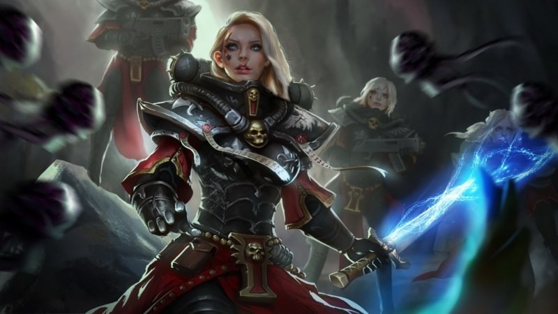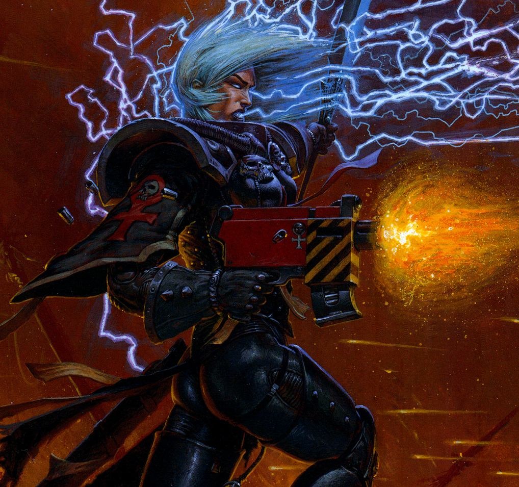 - Третья война за Армагеддон (998.M41) — Сестёр ордена Пресвятой Девы-Мученицы часто можно видеть на планетах сектора Армагеддон. Здесь они защищают одинокие миры от нападений чужаков и пристально наблюдают за жизнью тех, кто находится под властью Экклезиархии. Оплот ордена в секторе – Санкторум Святой Катерины, расположенный в высоких башнях Улья Темпестора, центра религиозной деятельности Экклезиархии на Армагеддоне. Когда орочьи подводные лодки поднялись из грязных вод Кипящего Моря, сёстры ордена Пресвятой Девы-Мученицы стояли в первых рядах защитников Улья Темпестора. Удар орковоказался настолько неожиданным, что многие подразделения имперских войск пребывали в растерянности. В это время орки успели полностью захватить значительную часть Нижнего Улья за первые несколько часов наступления. Неся огромные потери от постоянных орочьих атак, сёстры вынуждены были отступать через тёмные, сырые туннели и катакомбы Темпесторы, к самому центру Улья. Перед лицом быстро продвигающейся орочьей орды, имперская цепь командования начала распадаться. Многие подразделения Ополчения Улья были отправлены на укрепление позиций, уже занятых орками. Для сестёр и немногих отрядов Ополчения, которые им удалось собрать, оборона быстро превратилась в отступление с боем. Орки продолжали беспорядочно атаковать, пользуясь неспособностью имперских сил как-либо остановить их. И вскоре наступил момент, когда сёстры были прижаты к огромным бронированным дверям собственного Санкторума. Оказавшись на этой священной земле, сёстры отказались снова отступать. Битва ещё более усилилась, когда весь орден перегруппировался для защиты Санкторума. Как последний резерв, все служители Экклезиархии, способные сражаться, были призваны на защиту, чтобы погибнуть в попытке остановить чужаков. Тем временем, орки захватили весь остальной Улей, легко уничтожая очаги сопротивления Империума. Они уже провозгласили свою победу под предводительством вождя Газгкулла, благословлённого Горком. Орден Пресвятой Девы-Мученицы отчаянно бился священными болтерами и огнемётами, пока мощная атака босса Наргрима и его нобов в мега-броне не сломала хребет обороны сестёр. Согласно записям ордена, после этого наступило самое тёмное время. Сёстры отступали, отчаянно пытаясь перегруппироваться в последний раз. Орки ворвались в Санкторум зелёной волной, буквально разрывая сестёр на части. Они намеревались раз и навсегда уничтожить сестёр за их дерзкую попытку так долго противостоять оркам. Спустя всего лишь час в Санкторуме не осталось ни одного живого человека. Зеленокожие праздновали свою победу – Темпестора теперь принадлежала им. После падения Темпесторы, орден Пресвятой Девы-Мученицы мог выставить не более трёх боеспособных рот на полях боя Армагеддона. Гибель Санкторума тяжело отразилась на всем ордене, многие послушницы усомнились в своей вере в Императора. Но орден быстро оправился от этого сокрушительного поражения, несмотря на потери. Сёстры поклялись уничтожить орочьих захватчиков и отвоевать Улей Темпестора любой ценой. Хотя отряды сестёр разбросаны по всему Армагеддону Прим и Секундус, эта клятва объединяет их. Более того, единство и целеустремленность сестёр значительно укрепили боевой дух полков Имперской Гвардии, сражающихся вместе с ними. Гер