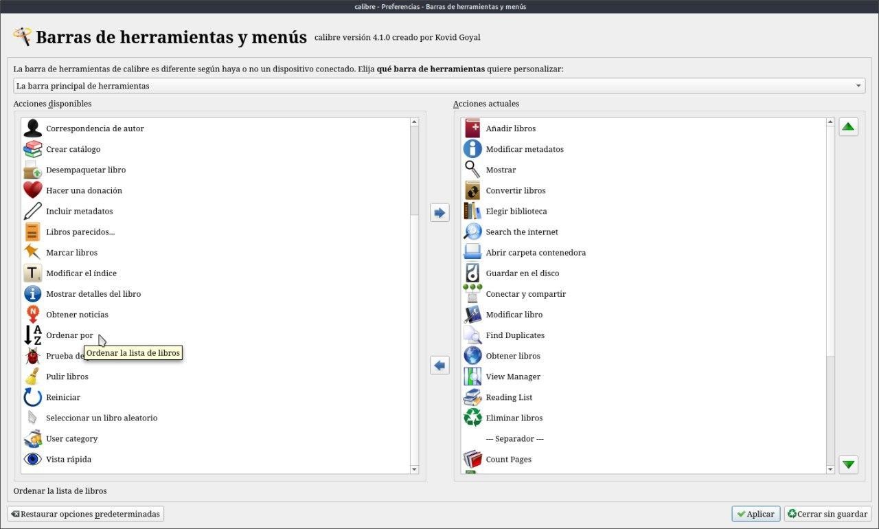 Voy a Preferencia Barra de Herramientas y menús