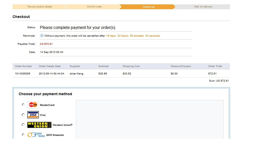 Order payment complete