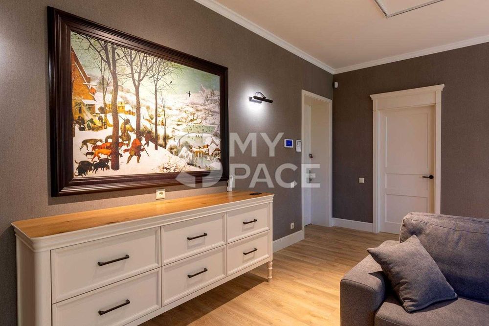 Планування: кухня інтегрована у простору вітальню, спальня, кабінет, окрема гардеробна, санвузол.