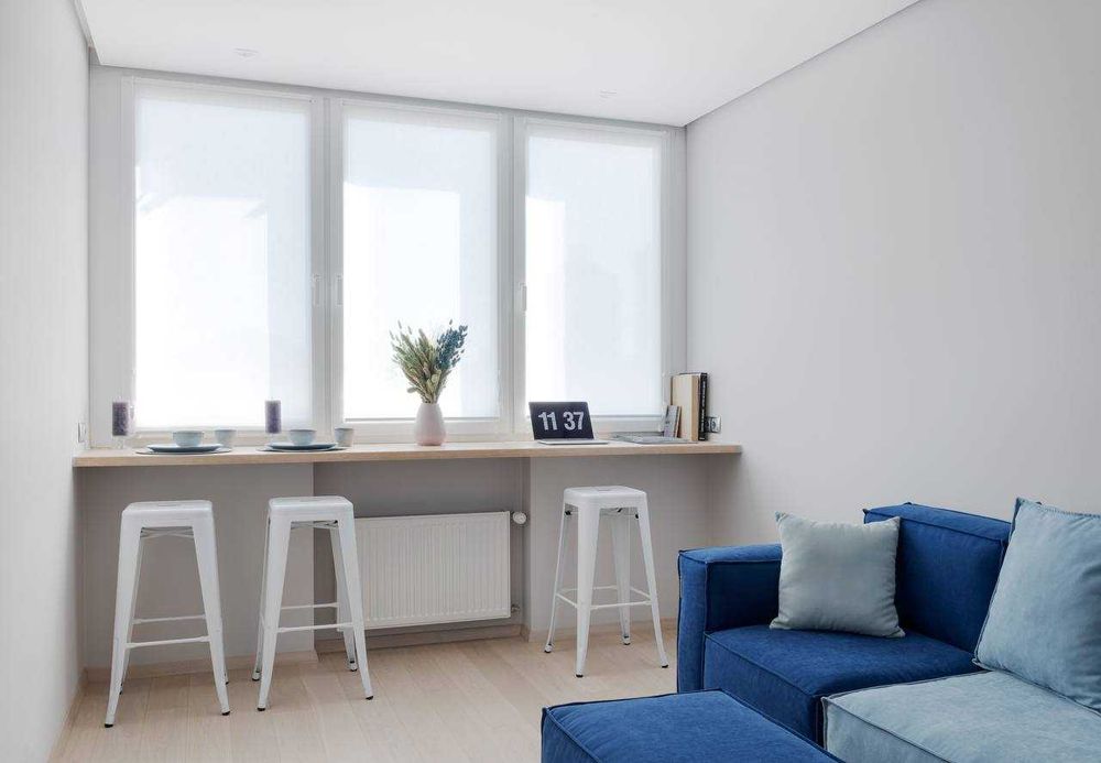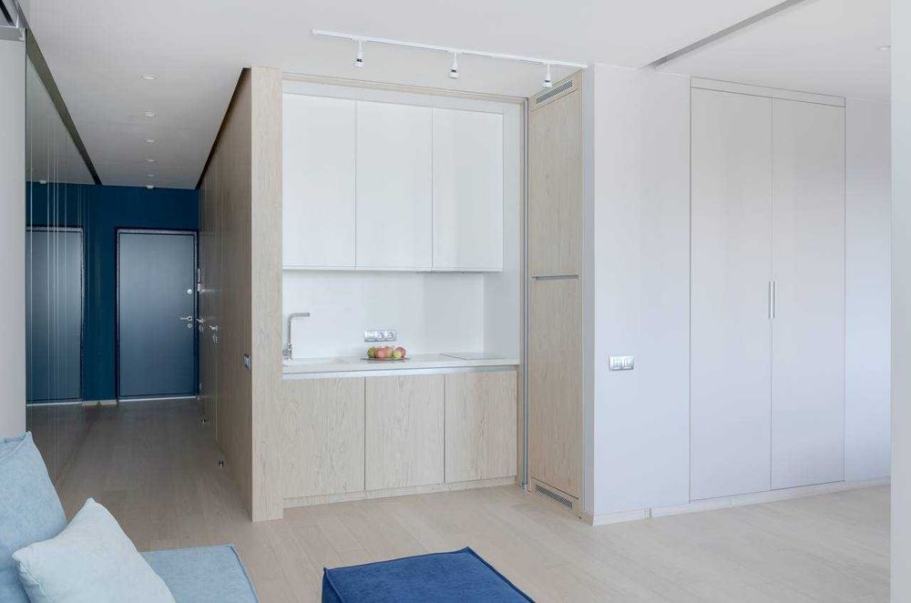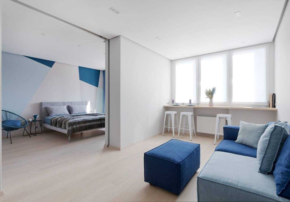 Квартира розташована на 6-му поверсі. В квартирі виконано авторський ремонт. Планування - "євродвушка". Розсувна скляна перегородка, між спальнею та вітальнею з кухней дозволяє за бажанням їх розділяти або об'єднувати в єдиний простір.