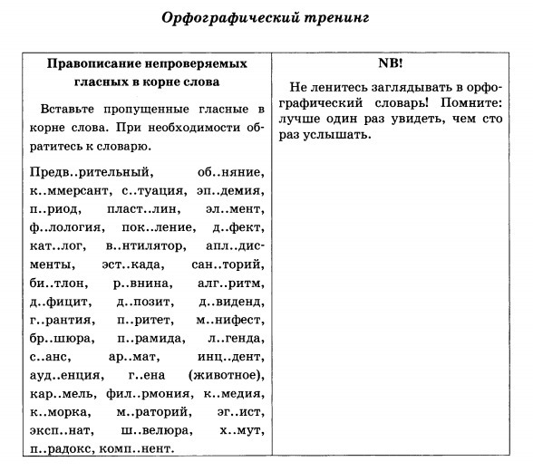 Орфографический тренинг 6 класс
