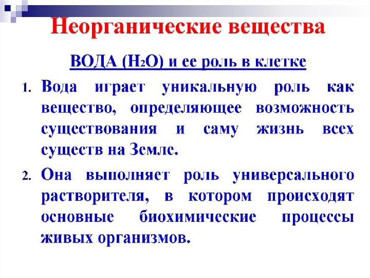 Органические компоненты в воде