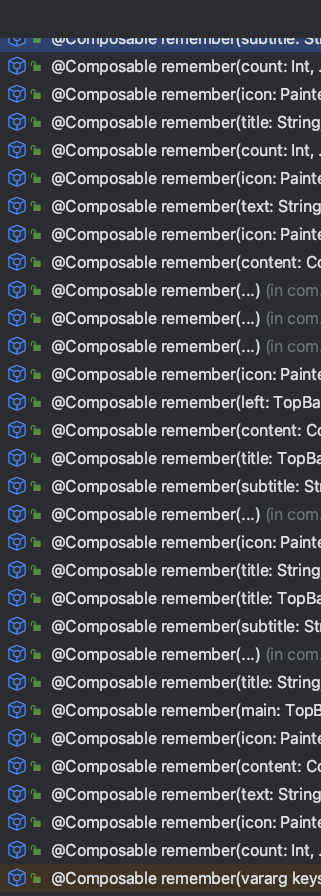 И вот последней каплей для начала рефакторинга стал Code Completition в Android Studio. При попытке импортировать функцию remember, появлялось такое громадное окошко, где нужный remember был в самом конце.
