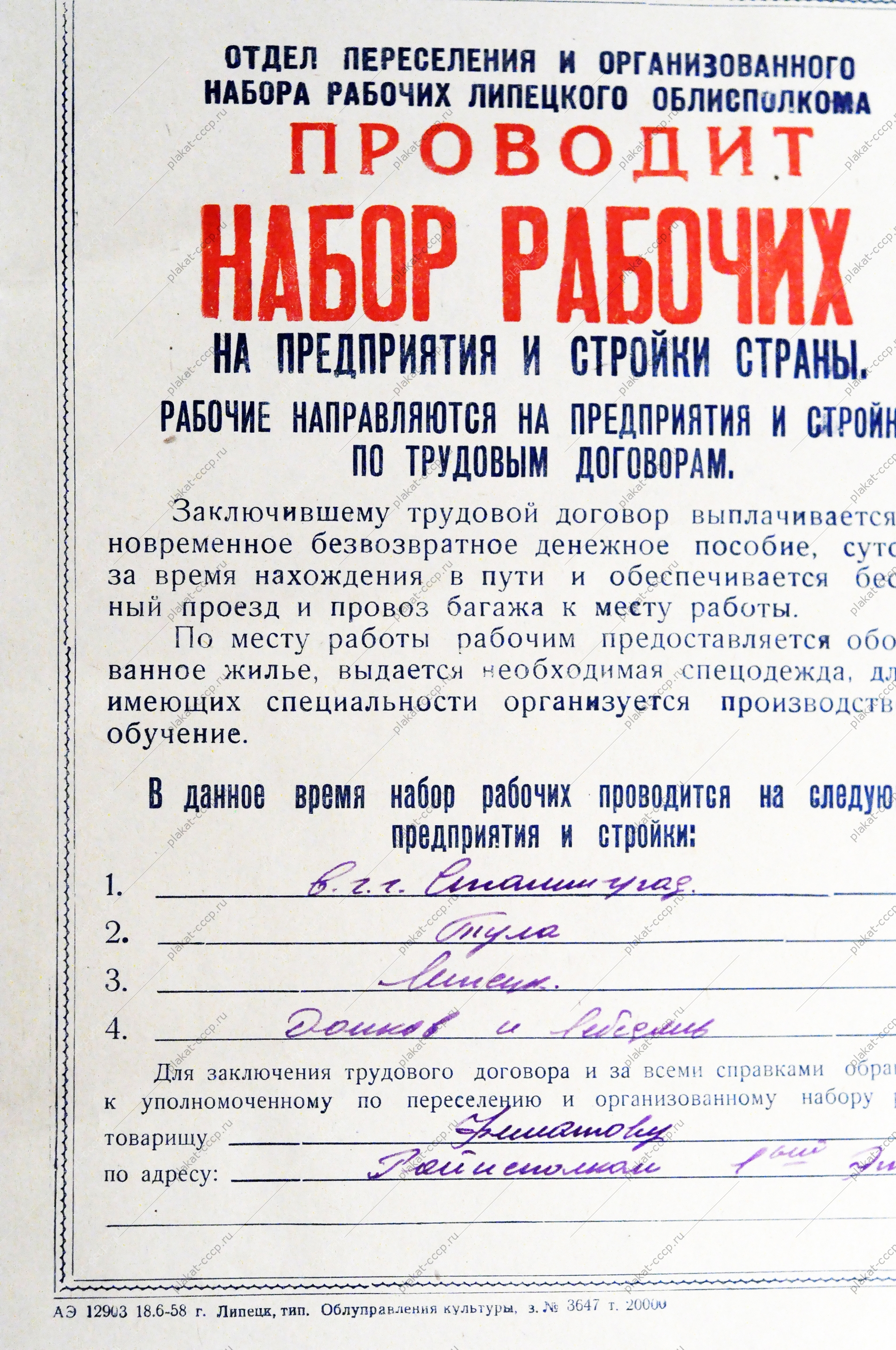 Организация набора рабочих