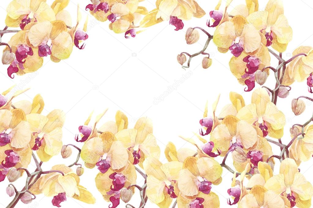 Акварель темно-красные и желтые орхидеи на белом | Премиум . . .