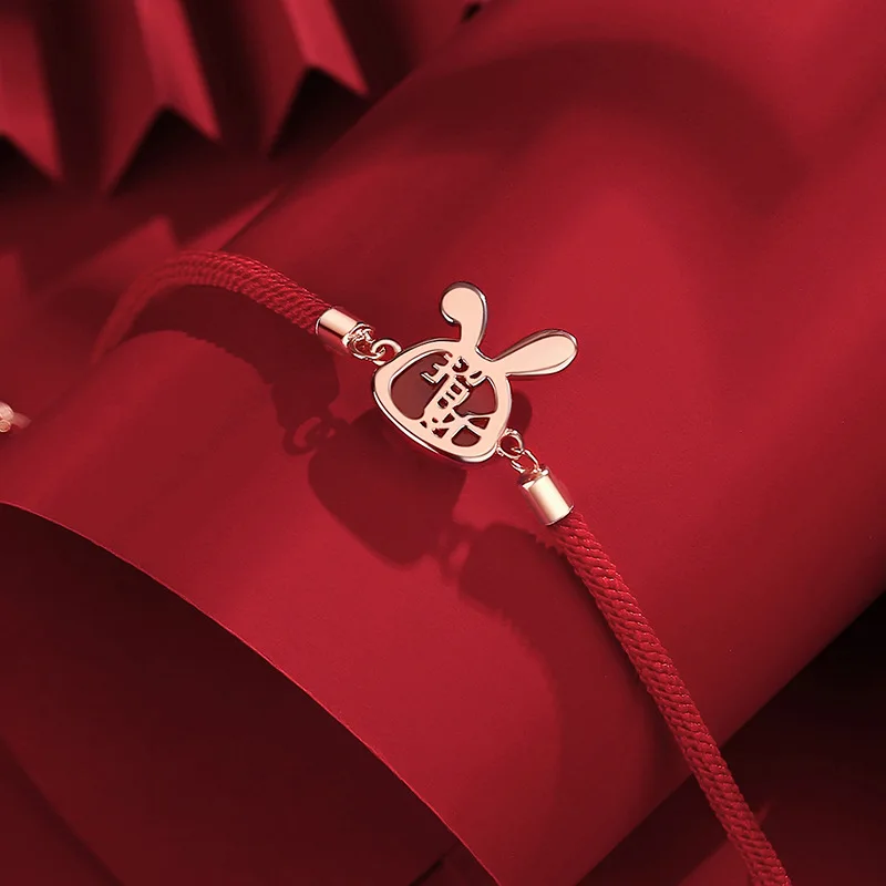 Original Charm Rabbit Red Rope Bracelet for Women Sterling Silver Rabbit Year Hand Rope Retro Jewelry Birthday Gift - Купить с бесплатной доставкой