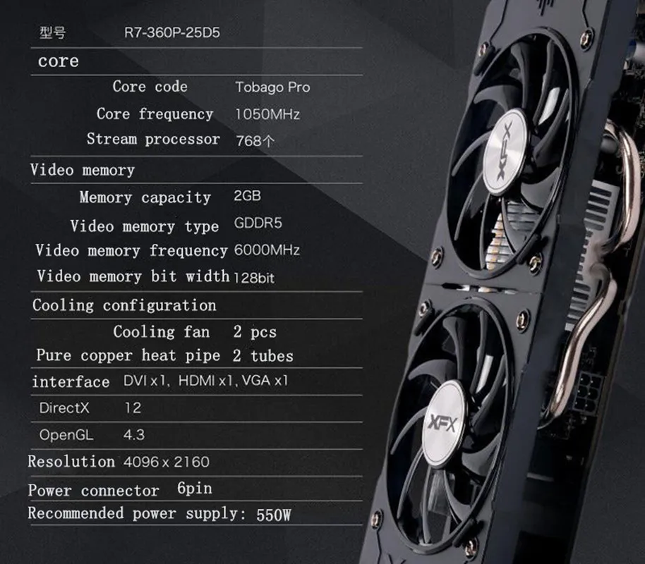 Original XFX R7 360 2GB GDDR5 Video Card AMD Radeon R7 360p 2G Graphics Screen Cards GPU Desktop PC PCI-E Game Map Videocard RGT - Купить с бесплатной доставкой