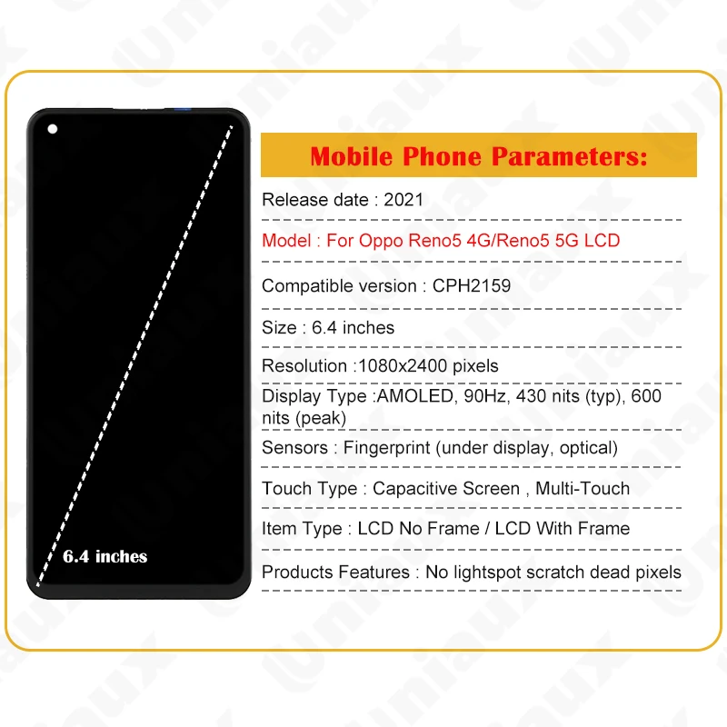 QrGsNYMpvHere you can buy Original for Oppo Reno 5 4G CPH2159 Lcd Display Touch Screen Digitizer Assembly for Oppo Reno5 5G PEGM00, PEGT00, CPH2145 LCD with free delivery to your post office.