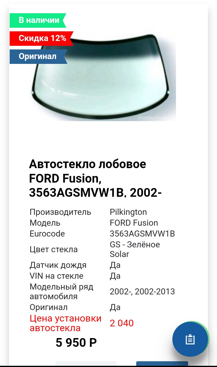 Оригинальное лобовое стекло форд