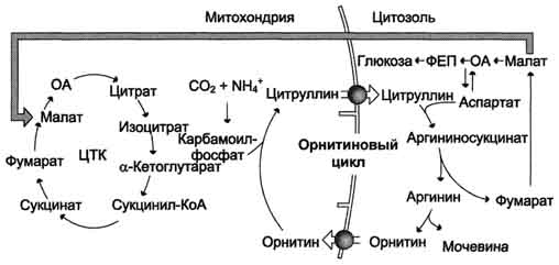 Чрезвычайно важная роль орнитина связана с его участием в цикле мочеобразования, необходимого для вывода аммиака . Аммиак образуется при распаде белков и является ядовитым для организма веществом . Орнитин участвует в его переработке с образованием мочевины . Мочевина также оказывает токсическое действие, увеличивает нервную возбудимость .