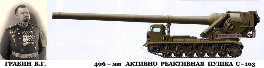 В 1950 году конструкторское бюро Грабина начало проектирование 406-мм активно-реактивной пушки С-103 на самоходном лафете. С-103 представляла собой газодинамическое динамореактивное орудие. В начале 1950-х годов пушки С-103 было решено использовать для стрельбы проектируемыми ядерными зарядами. 280-мм и 420-мм безоткатные орудия устанавливались на едином лафете, на шасси тяжелого танка. Для отработки боеприпасов и проверки конструкции стволов в ЦНИИ-58 были спроектированы баллистические установки 280-мм с шифром «0132БУ» и 420-мм с шифром «0114БУ». Обе системы испытаний не прошли.