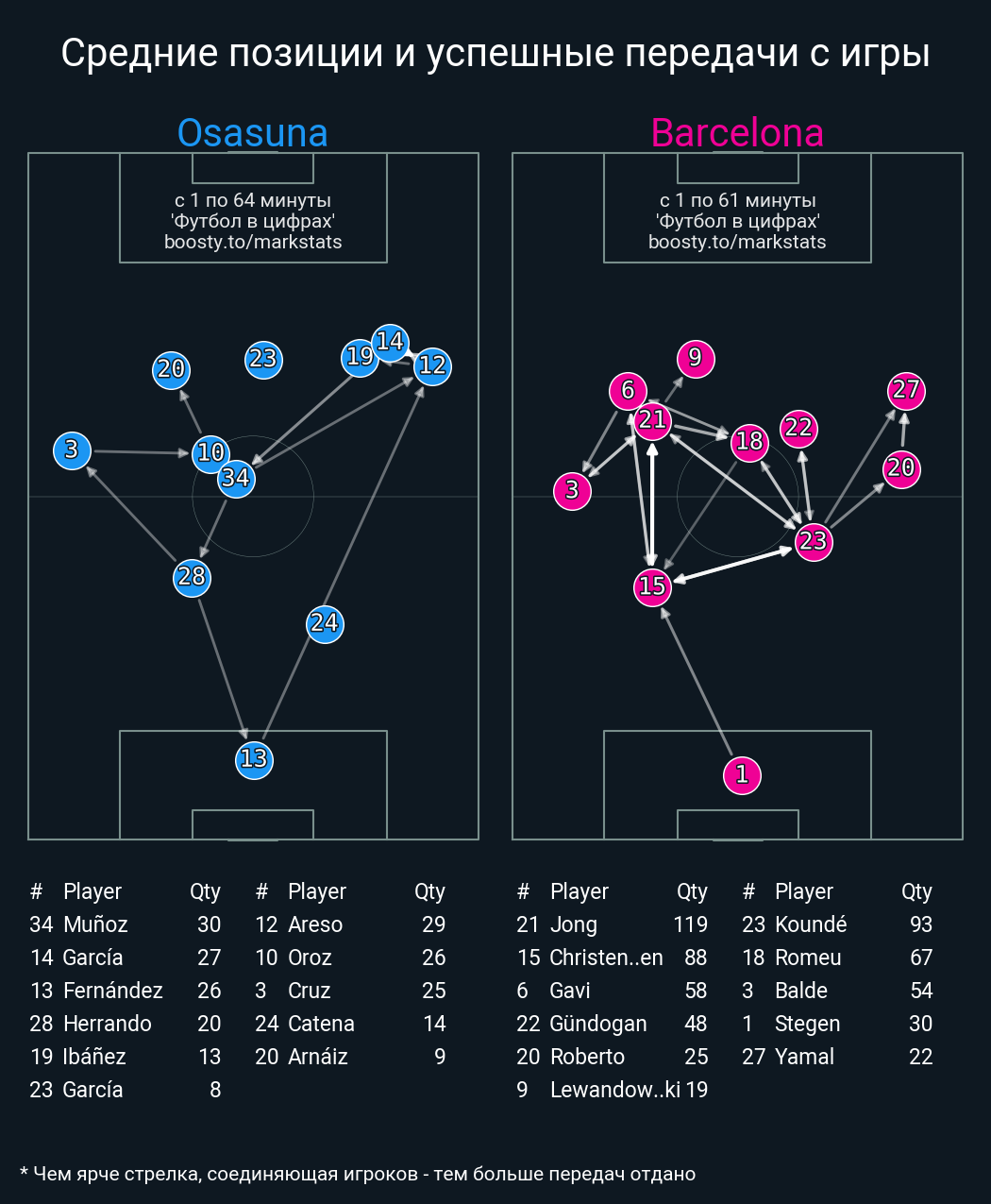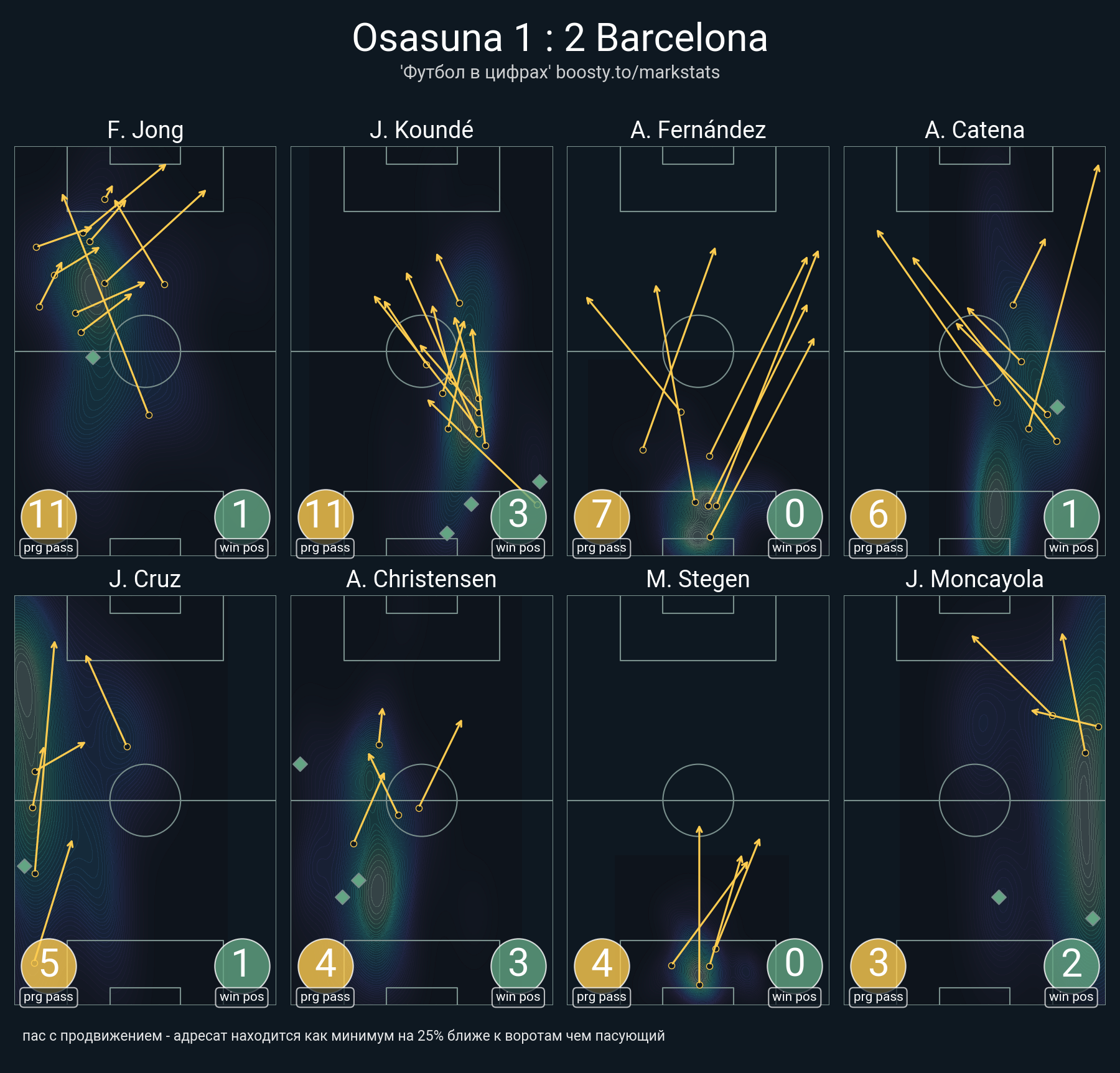 110 успешных передач из 122 попыток (11 с продвижением, 25 на трети соперника)