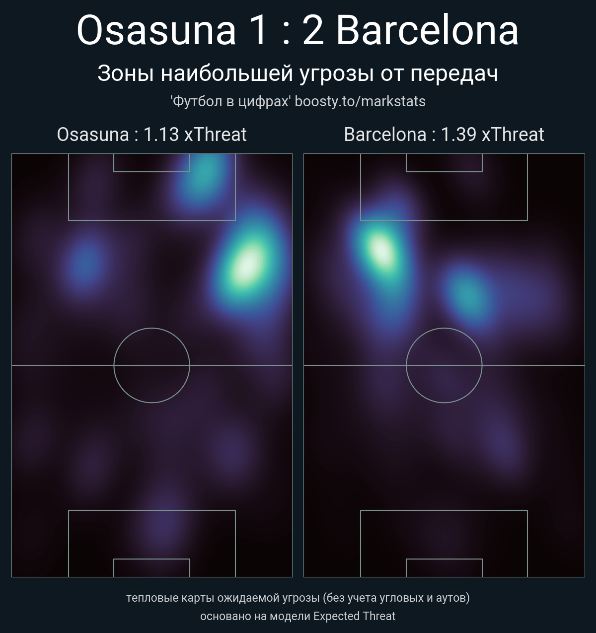 xThreat без учета угловых: 1.13 - 1.39