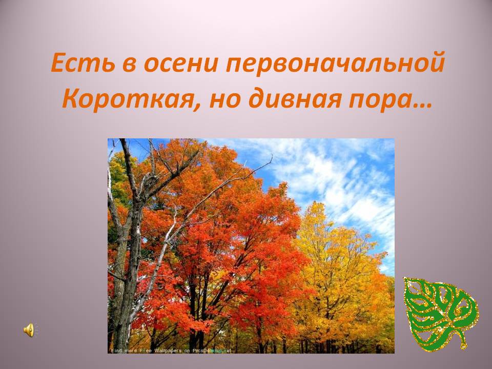 Есть в осени первоначальной . Короткая, но дивная пора — . Весь день стоит как бы хрустальный, И лучезарны вечера . . . Пустеет воздух, птиц не слышно боле,