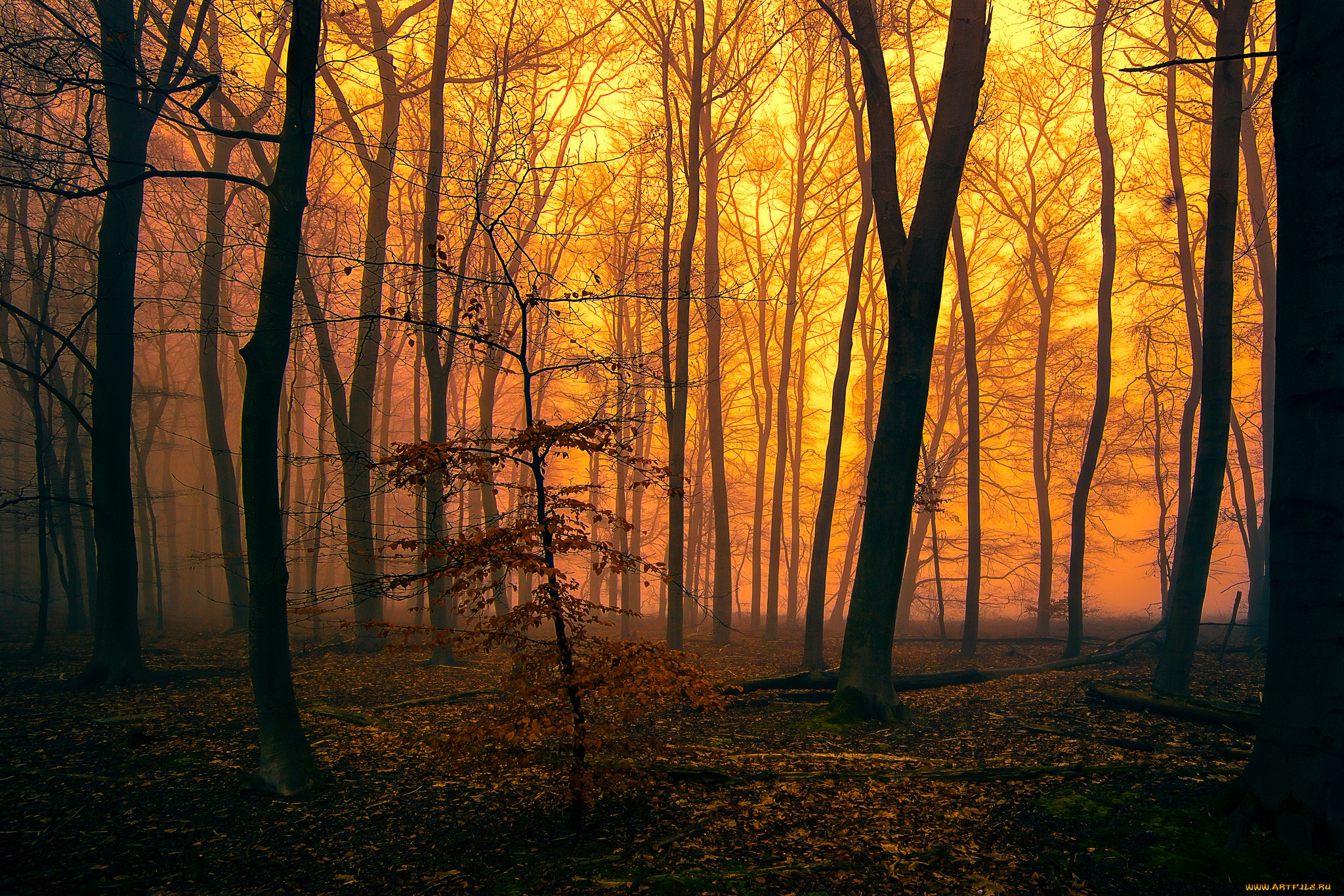 Осень закат лес 85 фото