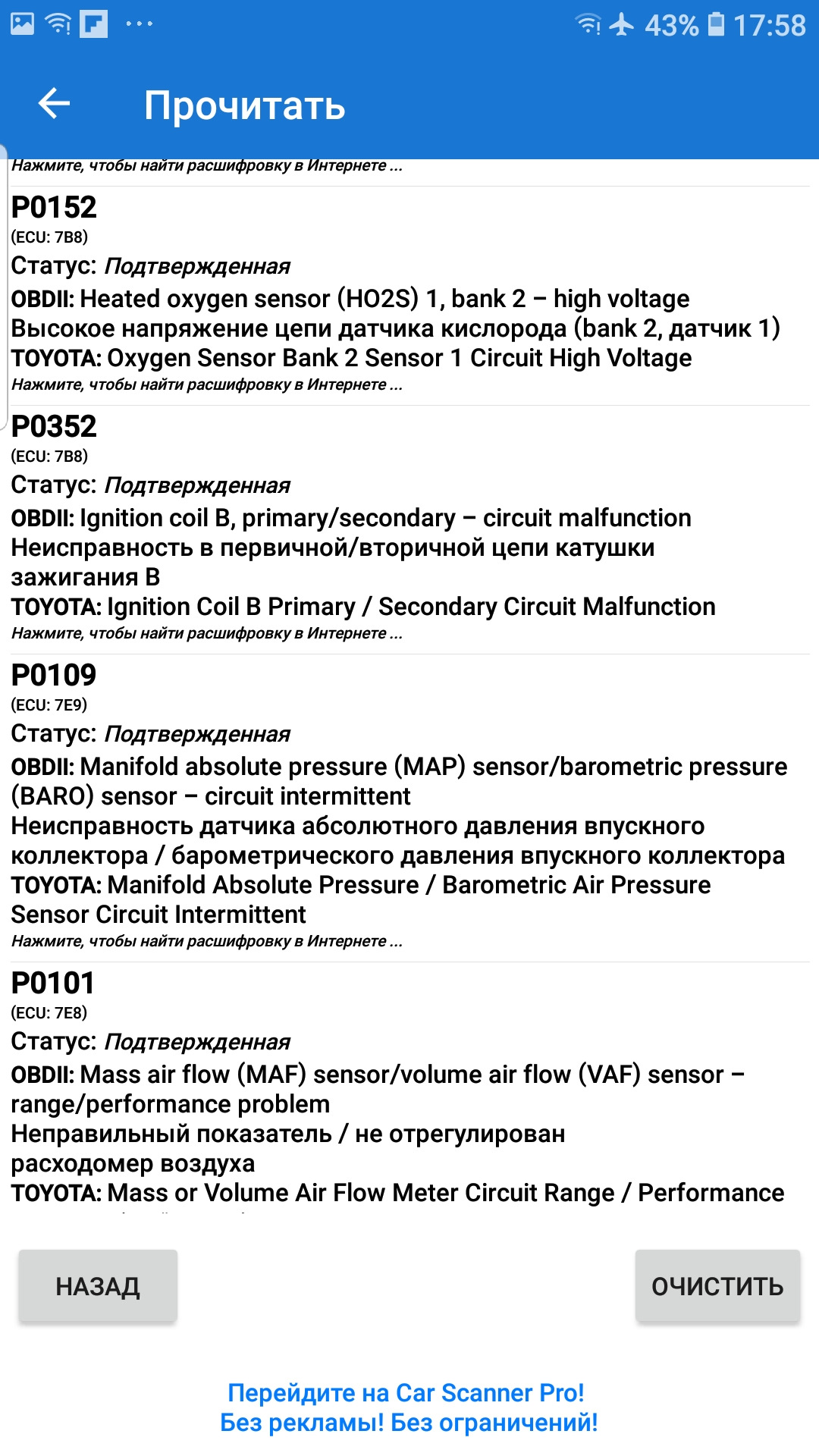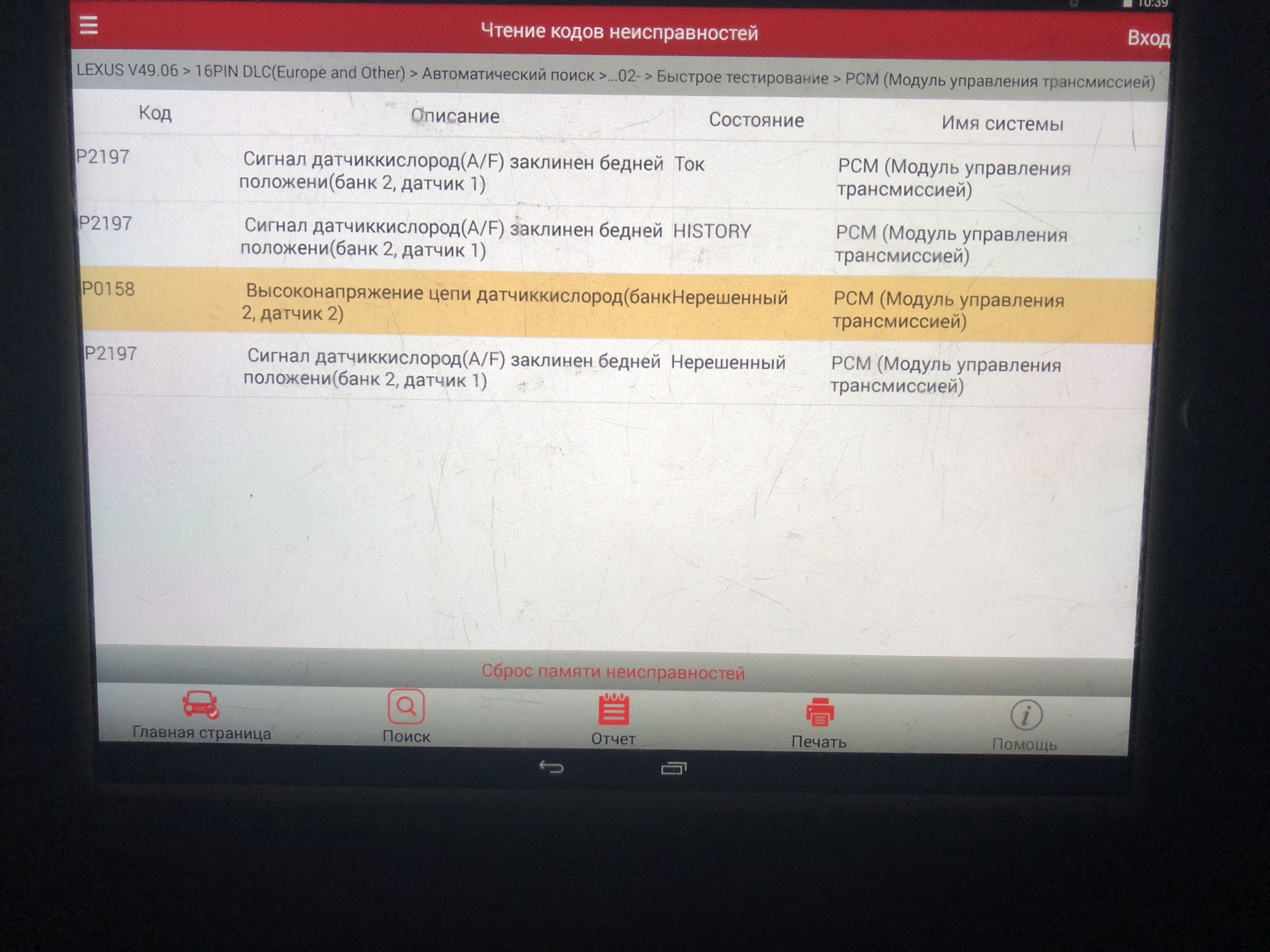 Ошибка двигателя лексус