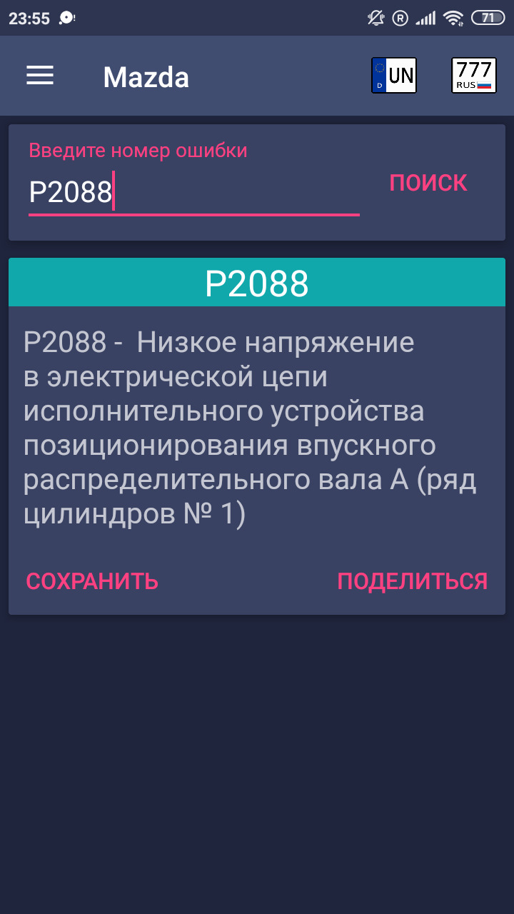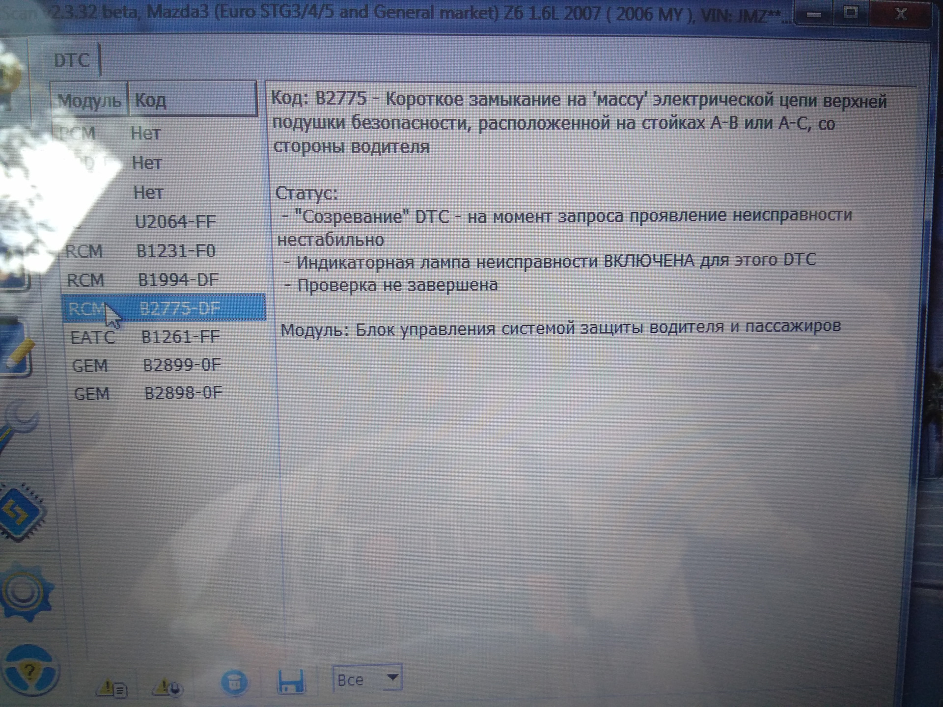 Ошибка мазда 3 бк