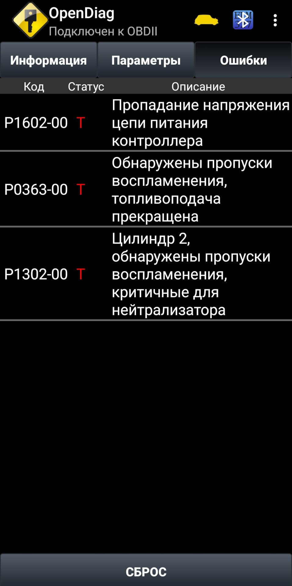 Ошибка p1602 гранта