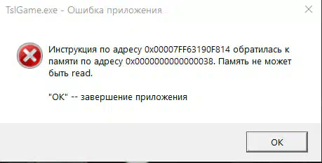 Ошибка tslgame exe