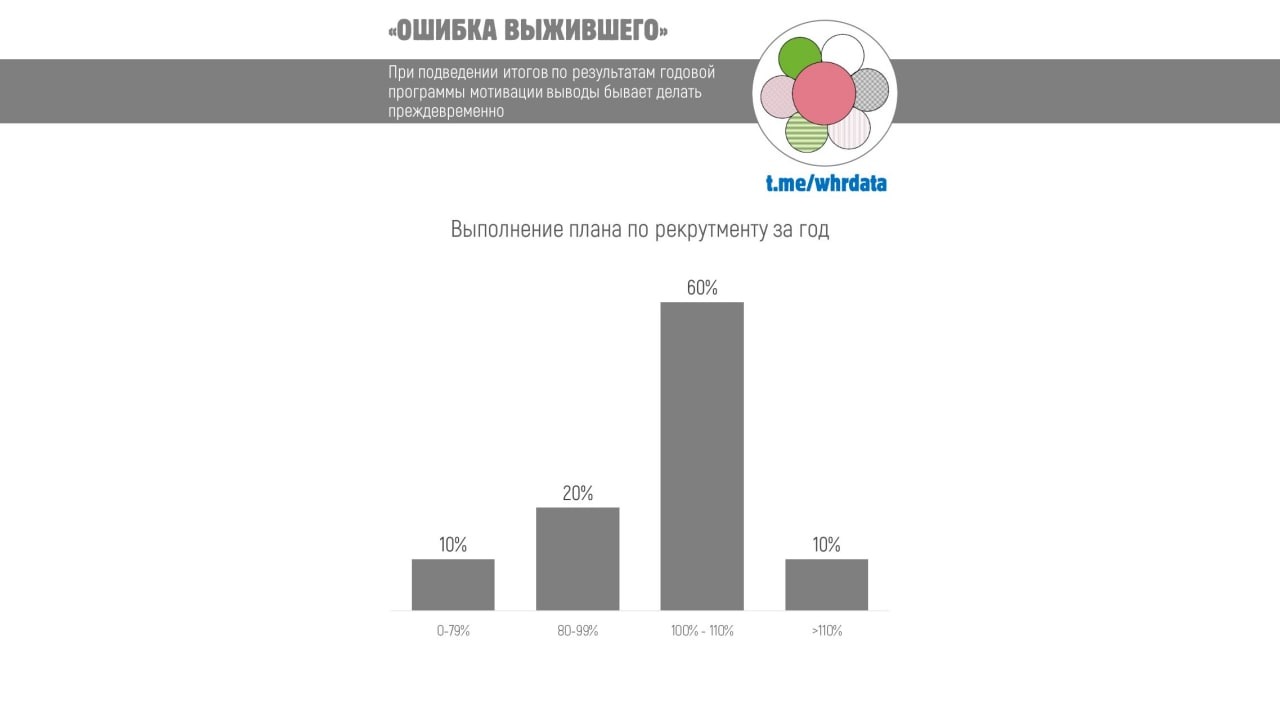 НО тут важно вовремя вспомнить, что сотрудники на таких позициях довольно мобильны, поэтому среди них обычно "выживает сильнейший". Т.е. те, кто был неуспешен, не выполнял цели и не получал квартальные премии, скорее всего, уже уволился и не доработал до годового подведения итогов.