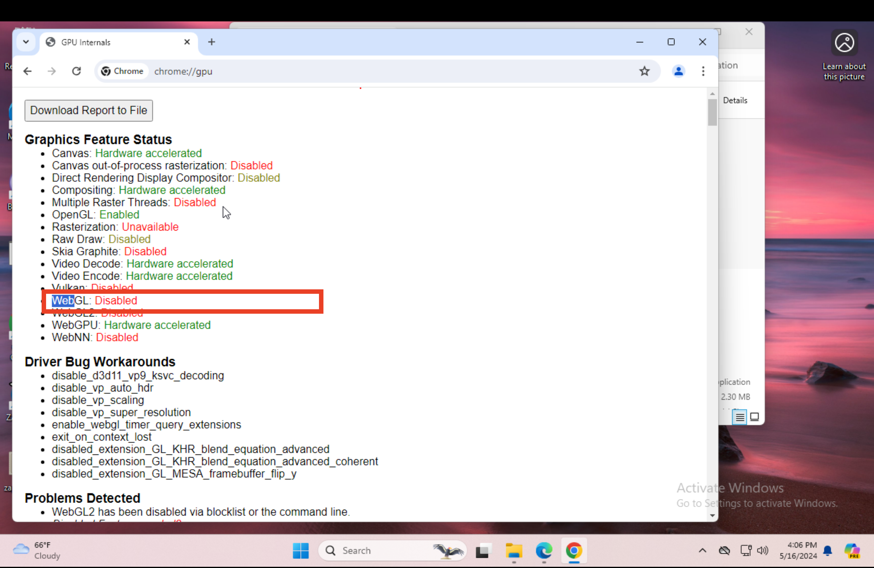 Далее нужно дописать такое значение "-disable-webgl"
