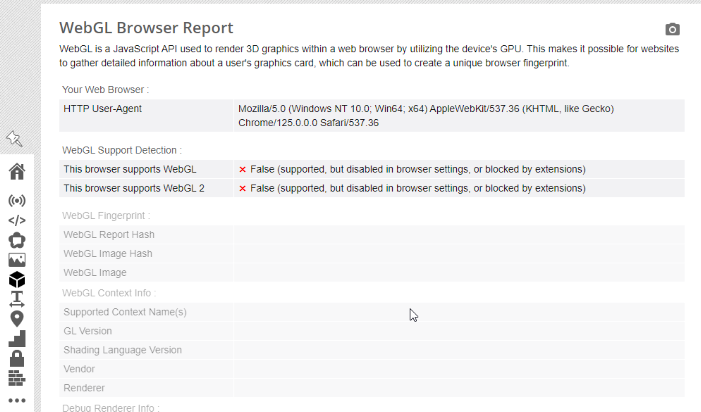 - Отключи WebGL и другие техники отпечатков браузера: Ты можешь отключить WebGL и другие техники отпечатков браузера в настройках твоего браузера.