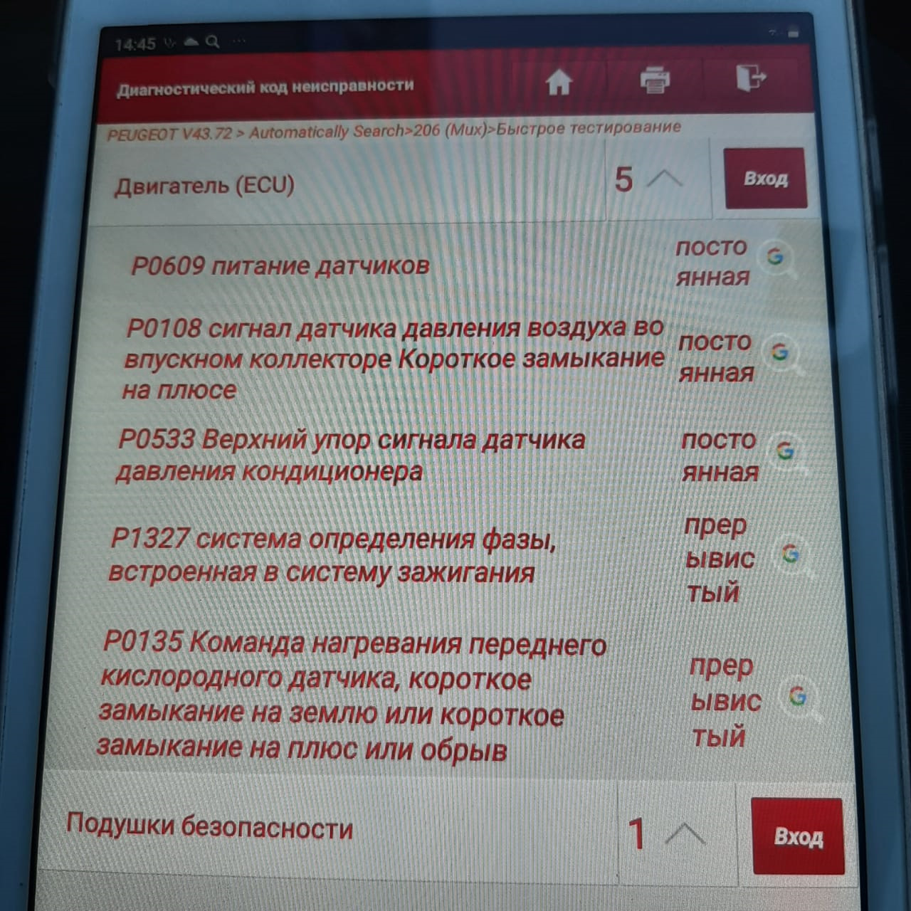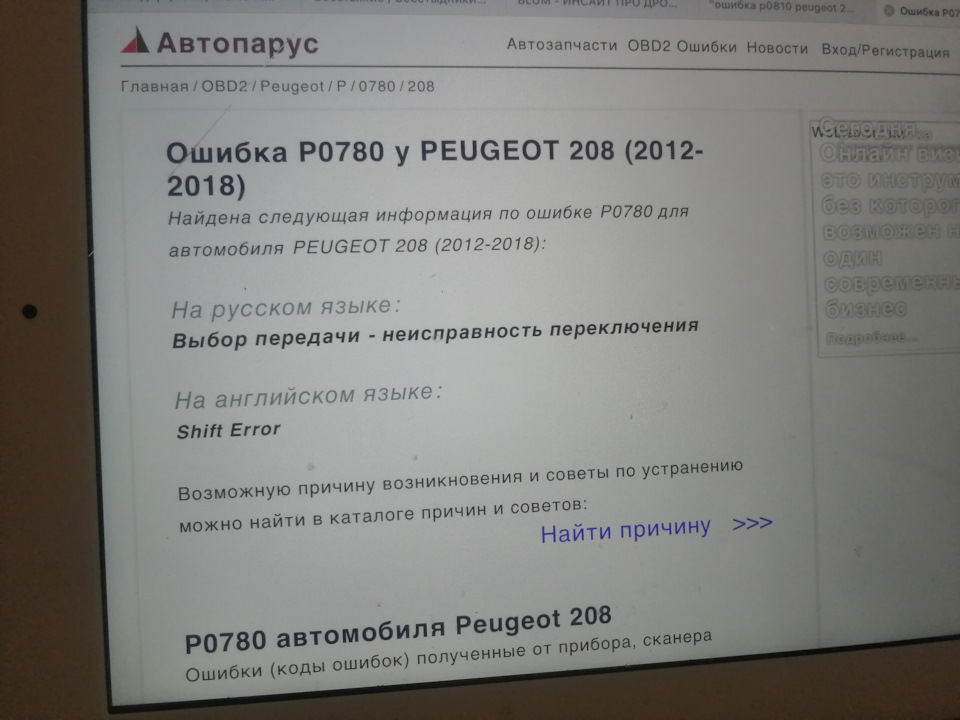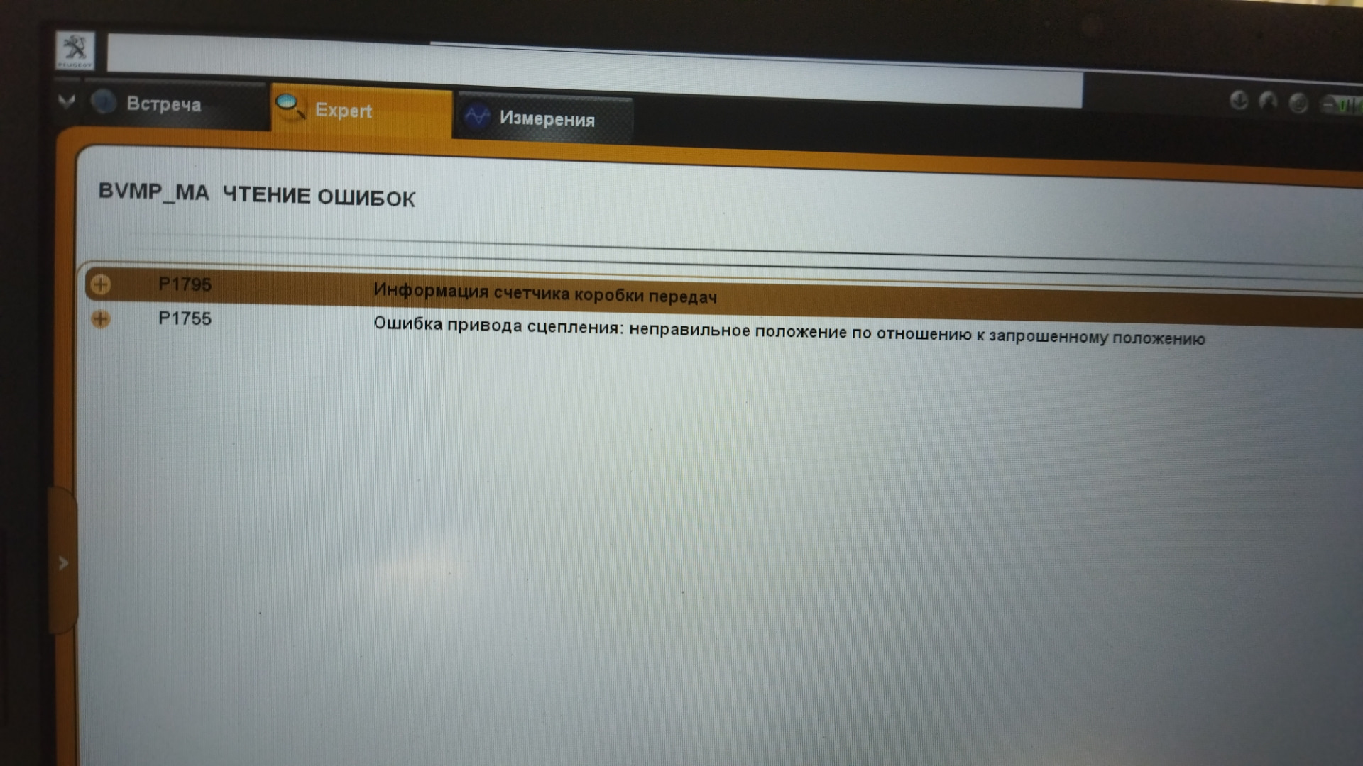 Ошибки робота пежо
