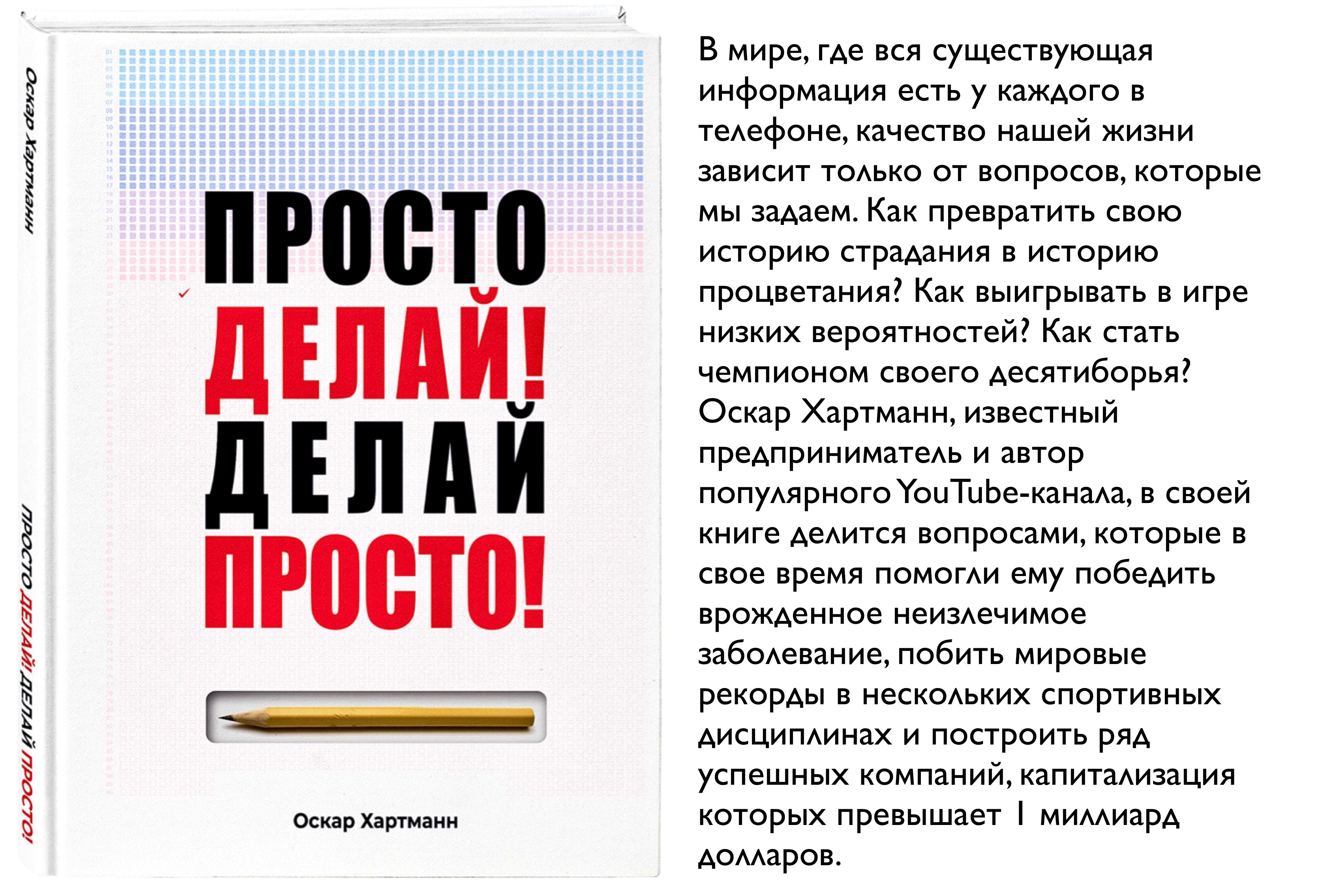 Вы смело можете оставлять свои заметки, для этого в книге предусмотрен карандаш. Карандаш – это просто, и им можно писать даже в космосе. Когда я создавал свою первую компанию, у меня была тетрадка, в нее я записывал все действия, которые мне надо было сделать, и ставил галочки о выполнении. Одним карандашом я сделал более пяти тысяч галочек! И в конце этой цепочки я стал состоятельным человеком. Карандаш и галочки очень ценны для меня. В этой книге я хочу передать самое ценное, что сам когда-то получил, поэтому в первую очередь я хочу подарить вам карандаш. Им, дорогой читатель, вы сможете сделать свои пять тысяч галочек.