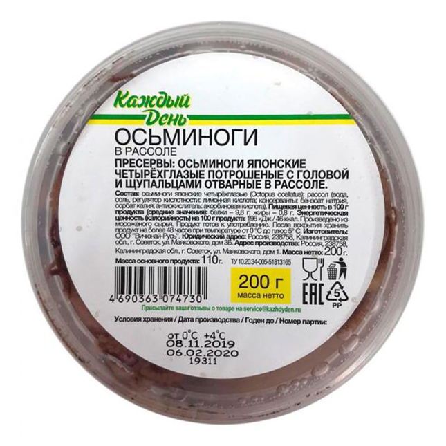 Осьминог калории