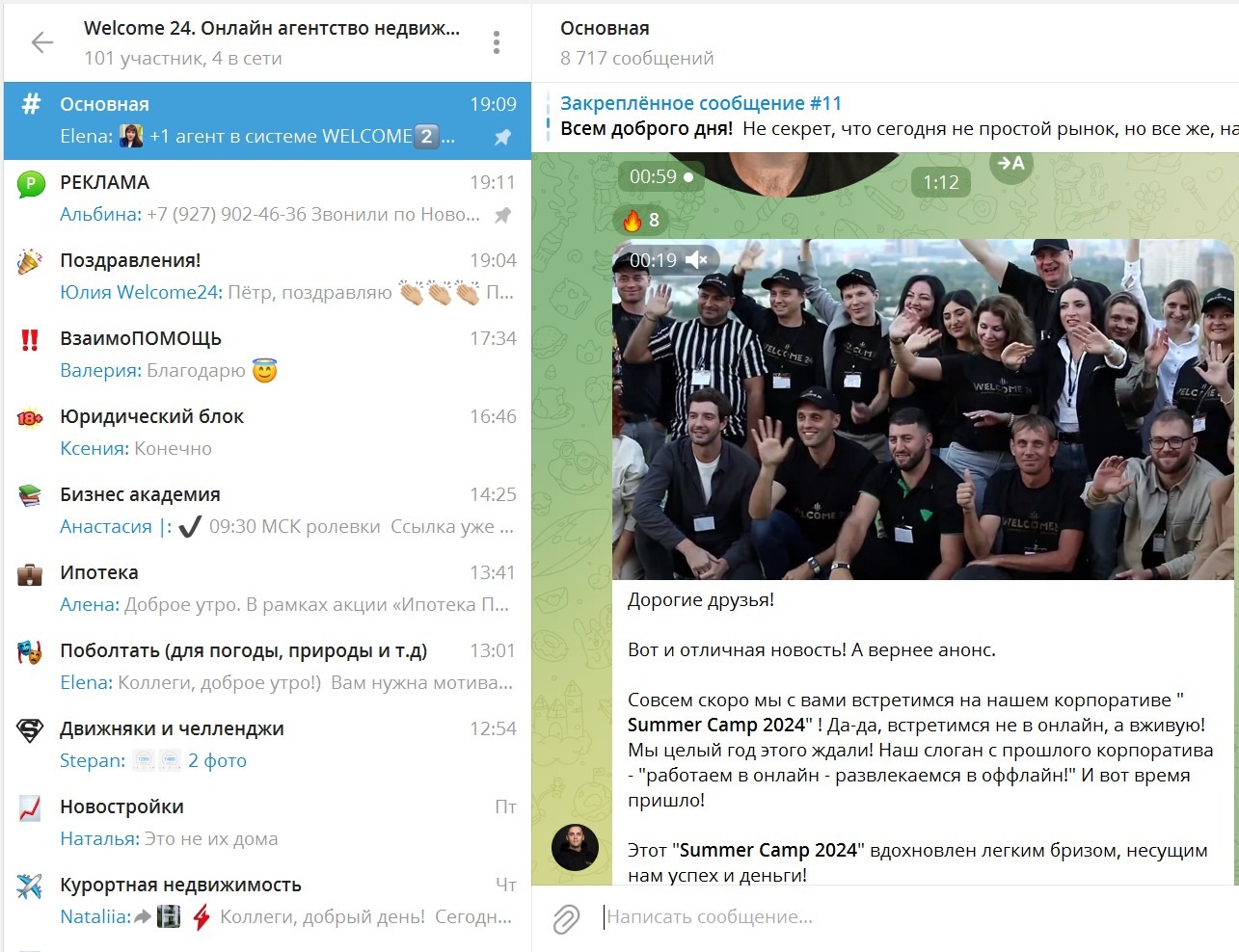 Welcome24Этот чат служит виртуальным офисом для всех агентов компании WELCOME24. Здесь вы можете: