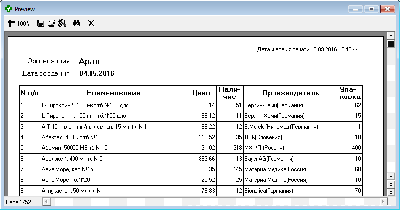 Основной прайс лист