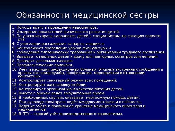 Основные функции медсестры