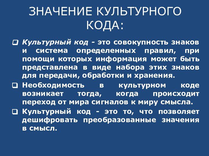 Основные коды культуры