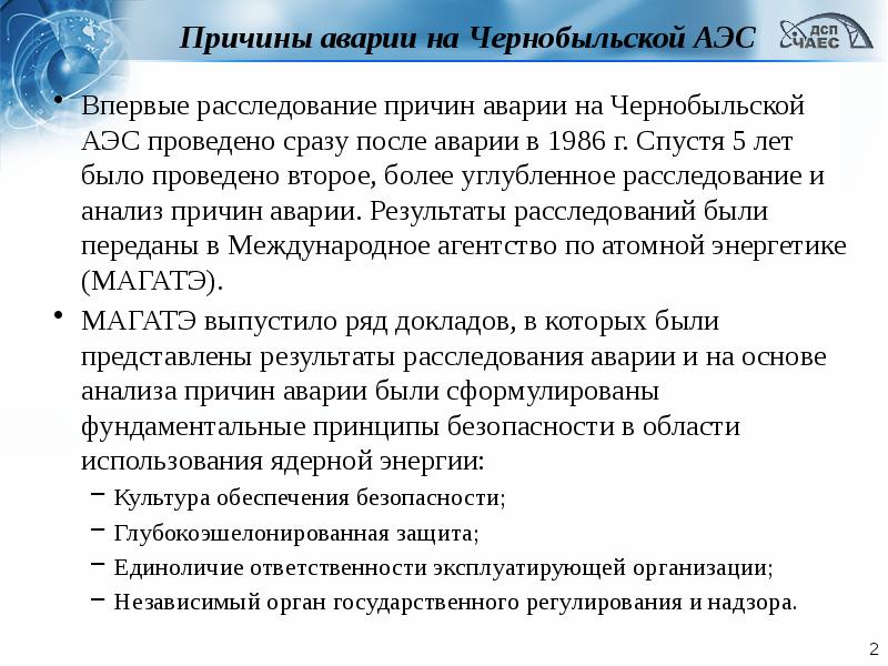 Основные причины аварий на аэс