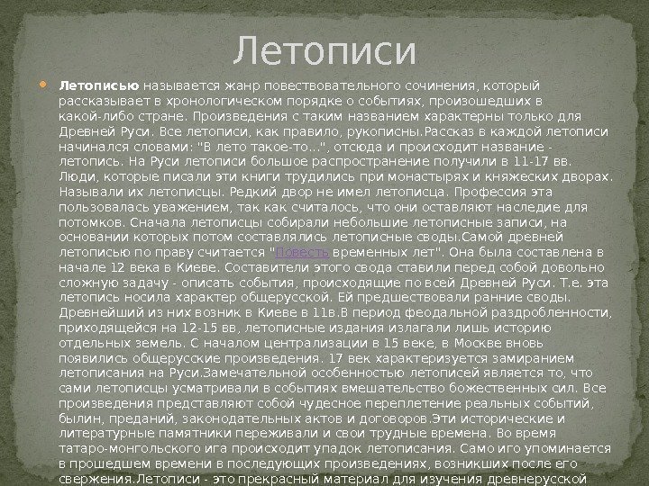 Основные темы летописи