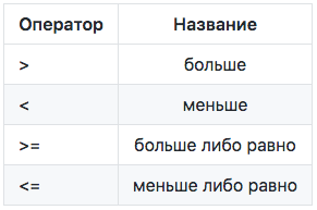 Операторы сравнения: