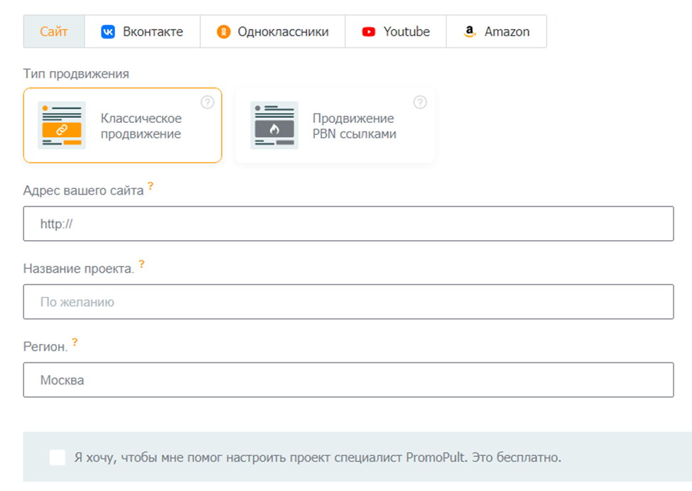 Начнем с первого. Нам в помощь пойдет сайт – promopult.