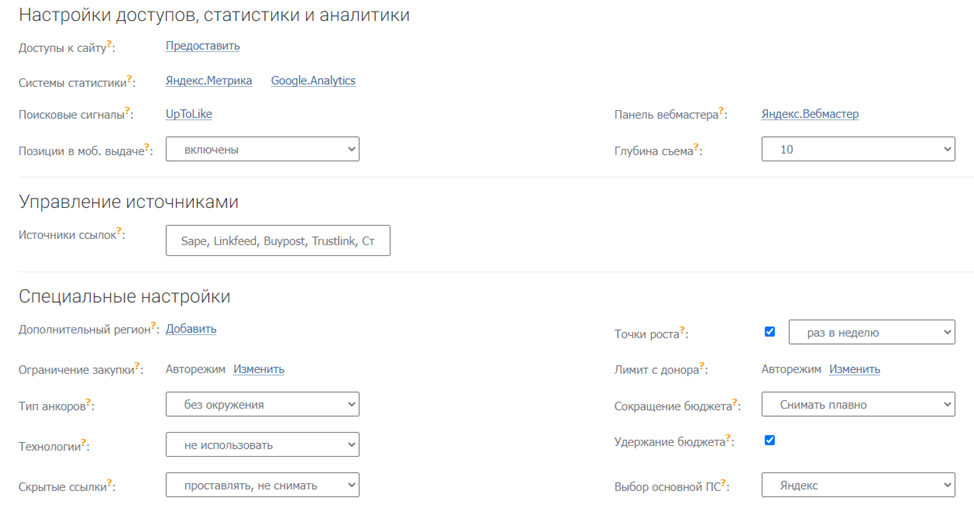 9.Ограничение закупки – максимальное количество закупа ссылок из источников в день.