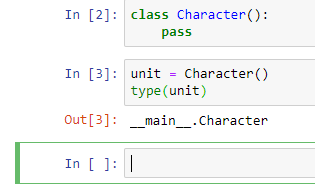 Попробуем создать свой класс. Для того, чтобы создать свой класс нужно воспользоваться ключевым словом class, а затем следует имя класса, и мы каждое слово пишем с заглавной буквы. pass значит, что мы не будем ничего реализовывать внутри класса. Исполняем этот код, и теперь мы можем создать экземпляр нашего класса. Смотрим, что за тип у нашей переменной, и видим, что ее тип соответствует имени класса.
