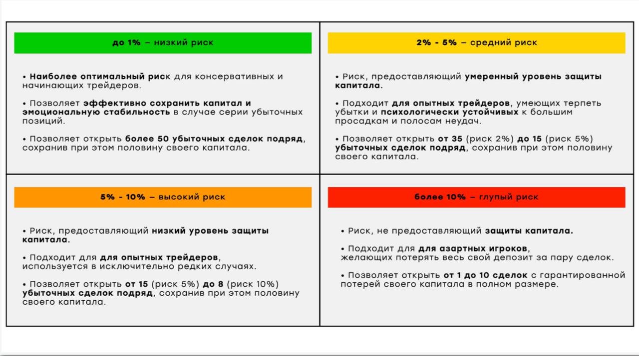 Здраво оценивайте свои силы и знания, прежде чем рисковать суммой более 1%.