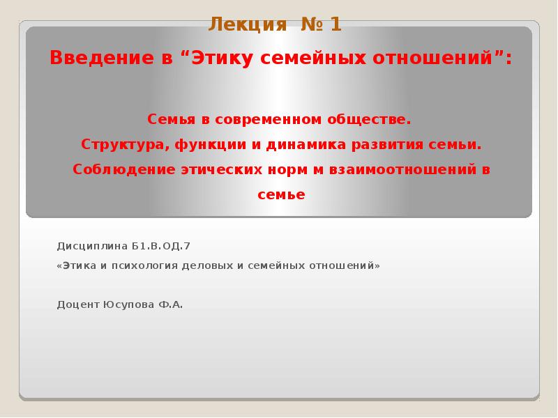 Основы семейной этики